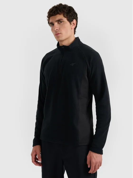 La felpa termica da uomo 4F in pile leggero con tecnologia 4FWarm offre un ottimo isolamento durante le attività invernali. Il materiale traspirante funziona perfettamente come secondo strato sotto la giacca, mentre il taglio slim e le cuciture piatte assicurano comfort e libertà di movimento. Il colletto alto e la zip 1/3 facilitano la regolazione della temperatura.