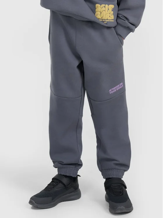Pantaloni della tuta da bambino in tessuto felpato da 410 gsm per resistenza e comfort quotidiano. Il taglio regular e i polsini elasticizzati garantiscono una vestibilità comoda, mentre la coulisse interna permette la regolazione in vita. Design semplice e versatile per ogni giorno.