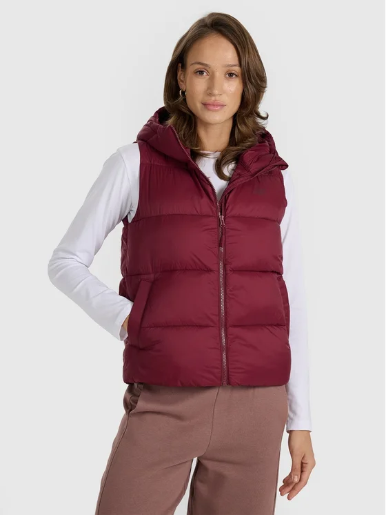 Il gilet imbottito 4F da donna con imbottitura sintetica combina leggerezza e funzionalità nelle giornate più fresche. Il tessuto esterno realizzato in 100% poliammide con finitura idrorepellente protegge dall'umidità, mentre la trapuntatura assicura un isolamento uniforme. Il taglio aderente, il cappuccio integrato e le tasche rendono il capo pratico e adatto per l’uso quotidiano e per gli spostamenti urbani.
