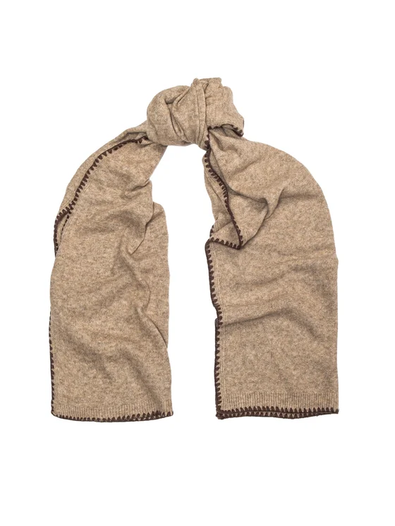 Morbido, caldo e piacevole al tatto. Realizzato interamente in lana naturale, riscalda perfettamente e si adatta bene al collo. Il melange color caramello è versatile e si abbina alla maggior parte dei cappotti e delle giacche. I bordi sono rifiniti con un filo più scuro, che aggiunge un tocco delicato ed elegante. Ideale per le giornate fredde: leggero ma allo stesso tempo molto caldo.