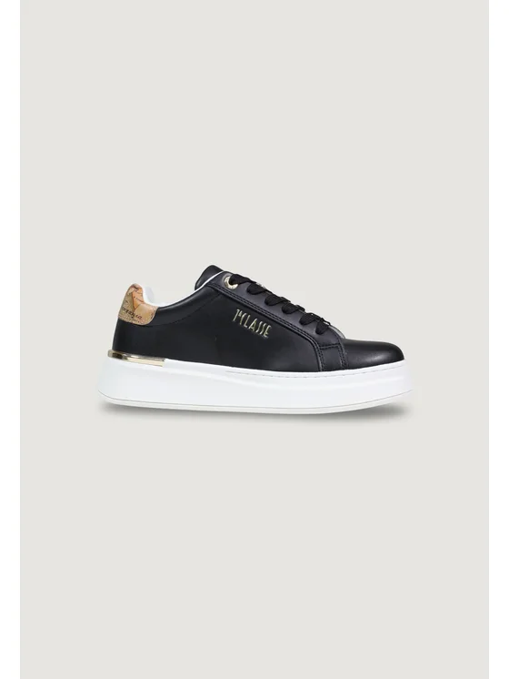 Le sneakers da donna Alviero Martini Prima Classe modello CHILD 2427 0289 sono realizzate in 100% poliuretano, garantendo una combinazione di resistenza e leggerezza ideale per l'uso quotidiano. Il design moderno si distingue per la tomaia elegante con dettagli iconici del brand, tra cui la scritta '1ª CLASSE' e inserti decorativi effetto mappa sul tallone. La suola alta conferisce comfort e sostegno durante la camminata, valorizzata da un inserto metallizzato che dona un tocco sofisticato. Ideali per look urban chic o casual raffinati, queste sneakers rappresentano la scelta perfetta per chi ama distinguersi con stile.