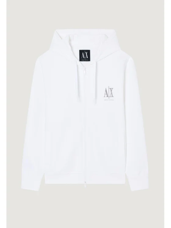 La felpa con cappuccio da uomo Armani Exchange modello XM000371 AF10818 è la scelta ideale per chi cerca uno stile casual ma raffinato. Realizzata con una composizione di alta qualità composta da 79% cotone, 17% poliestere e 4% elastam/lycra, questa felpa offre una vestibilità confortevole e una piacevole elasticità. Il design presenta una chiusura frontale con zip a doppio cursore, cappuccio regolabile con coulisse e logo Armani Exchange stampato sul petto, per un tocco distintivo e moderno. I polsini e il fondo a costine assicurano una perfetta aderenza, mentre le tasche laterali aggiungono praticità e funzionalità. Ideale per il tempo libero, le uscite informali o per completare un look urban di tendenza, questa felpa rappresenta un capo versatile e di grande qualità.