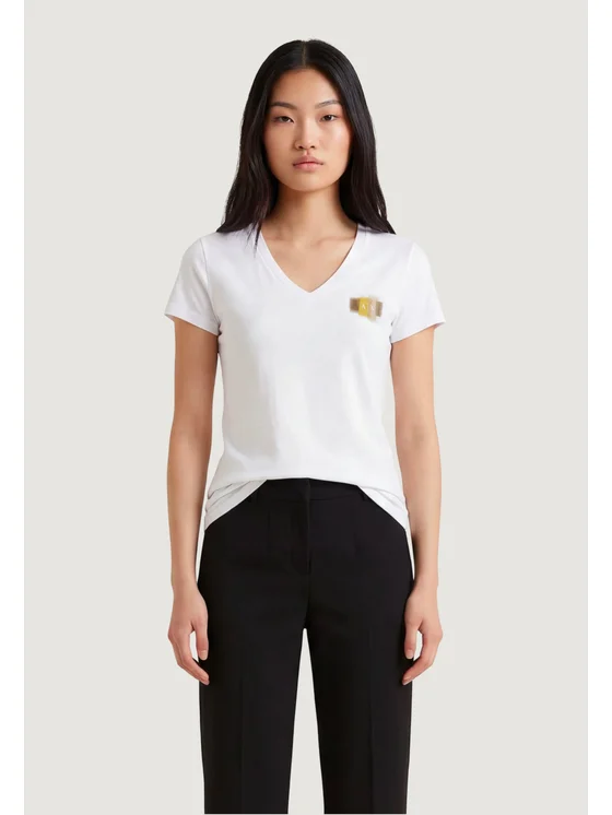 La t-shirt da donna Armani Exchange XW002321 AF10356 rappresenta un perfetto equilibrio tra stile contemporaneo e comfort quotidiano. Realizzata in 100% cotone di alta qualità, questa maglietta a maniche corte offre una vestibilità morbida e traspirante, ideale per ogni stagione. Il design minimal è arricchito da uno scollo a V femminile e da un elegante dettaglio logo dorato sul petto, che aggiunge un tocco di raffinatezza e riconoscibilità al capo. Perfetta da abbinare sia a look casual che più formali, questa t-shirt è un must-have versatile per il guardaroba di ogni donna attenta allo stile.