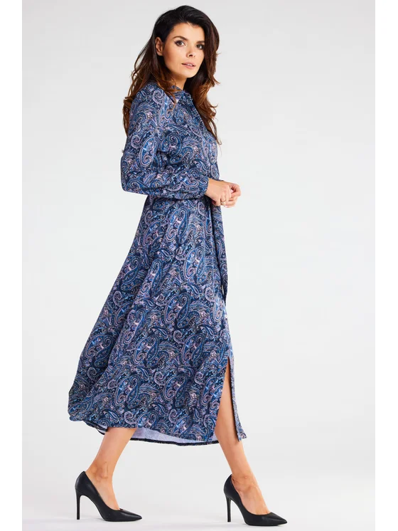 Awama Vestito chemisier A467 Blu scuro Basic Fit