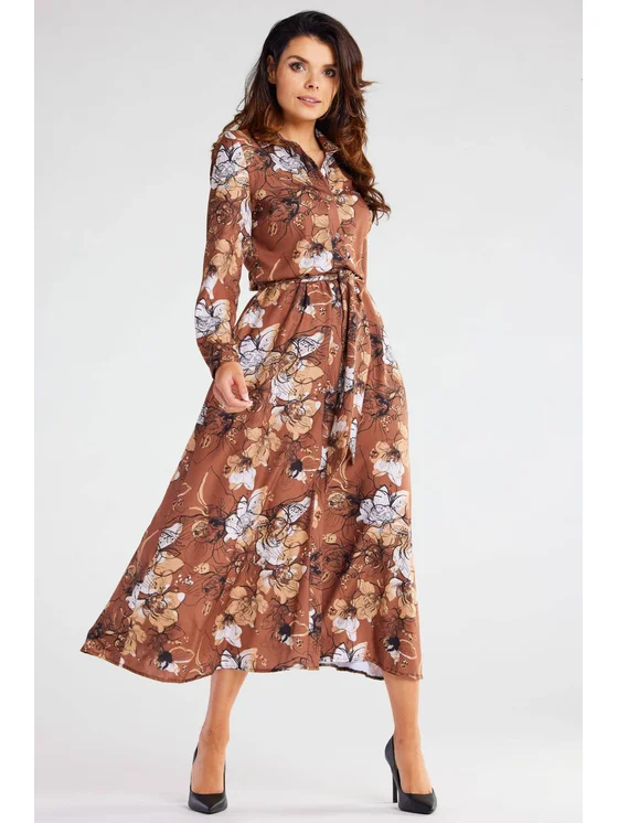 Awama Vestito chemisier A467 Marrone Basic Fit