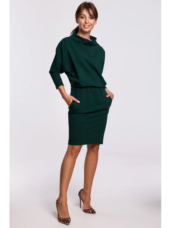 Il taglio di questo abito lo rende adatto a qualsiasi figura. Una gonna a matita aderente e un top rilassato con maniche a kimono che terminano con un orlo a coste, il tutto cucito in morbida maglia di cotone: comfort e stile.
