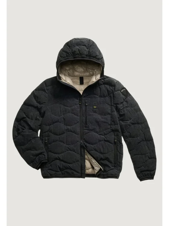 Il piumino da uomo Blauer WAVE 25WBLUC03074 è la scelta ideale per affrontare la stagione fredda con stile e funzionalità. Realizzato interamente in poliestere di alta qualità, questo giubbotto presenta una trapuntatura geometrica moderna che aggiunge un tocco distintivo al design. La chiusura frontale con zip a doppio cursore, il cappuccio integrato e le tasche laterali con zip garantiscono praticità e protezione dal vento. Il logo Blauer applicato sulla manica e il dettaglio sul petto conferiscono autenticità e carattere al capo. Perfetto per l’uso quotidiano in città o per le attività outdoor, questo piumino assicura comfort termico e massima libertà di movimento grazie alla leggerezza dei materiali.