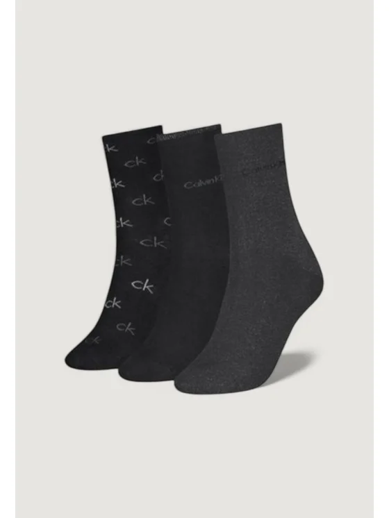 CALVIN KLEIN 3-Pack di calze da donna in misto cotone con stampa a fantasia e logo laterale ripetuto. Composizione 63% cotone 35% poliammide 2% elastane