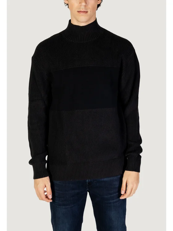 Calvin Klein Jeans Maglione MIXED STITCH HIGH Nero To Fit