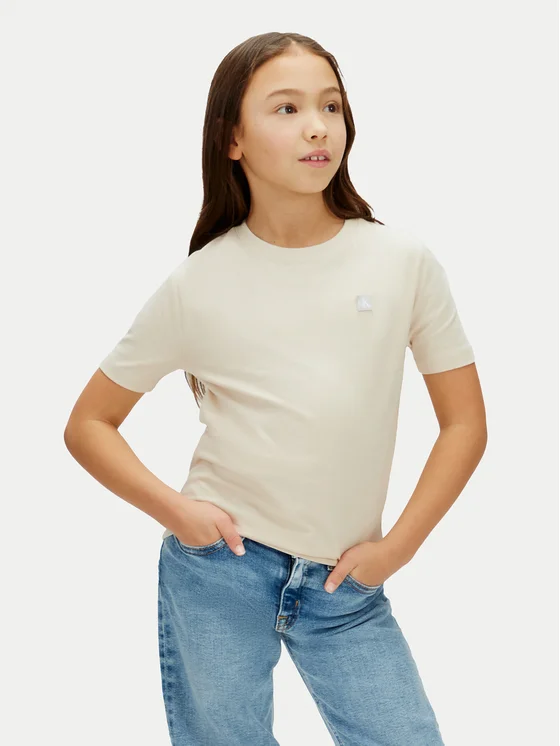 Calvin Klein Jeans T-shirt Mono Mini Badge LV1CKSJA30 Beige Regular Fit