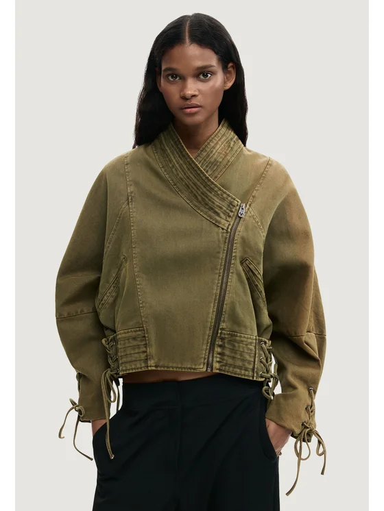 Il giubbotto da donna Desigual CHAQ_NAYELI (modello 26SWEW29) rappresenta una scelta di stile contemporaneo, perfetta per chi desidera distinguersi con un capo originale. Realizzato in 100% cotone, offre una sensazione di comfort naturale e leggerezza, ideale per la mezza stagione. Il design asimmetrico con zip laterale dona un tocco moderno e deciso, mentre le cuciture a vista e i dettagli con lacci regolabili sui polsi e sui fianchi aggiungono carattere e personalità. Il taglio morbido e la vestibilità rilassata assicurano libertà di movimento, rendendo questa giacca perfetta sia per look casual sia per outfit più ricercati. Un capo versatile e di tendenza, firmato Desigual.