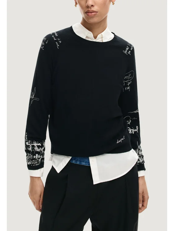 La maglia da donna Desigual JERS_MARQUETTE (modello 26SWJF10) è un capo di maglieria moderno e di tendenza, ideale per un look casual ma ricercato. Realizzata con una composizione di alta qualità, 83% viscosa e 17% poliammide, questa maglia offre una vestibilità confortevole e leggera, perfetta per ogni stagione. Il design si distingue per le scritte a contrasto sulle maniche e sulle spalle, che donano un tocco originale e distintivo. Il taglio regular e il girocollo la rendono facile da abbinare sia a pantaloni eleganti che a jeans, per outfit versatili e sempre attuali. Un capo firmato Desigual, sinonimo di stile unico e contemporaneo.
