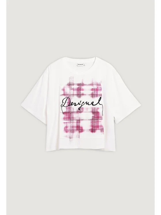 Scopri la t-shirt da donna Desigual TS_CRACOVIA 26SWTK16, un capo essenziale per ogni guardaroba contemporaneo. Realizzata in 100% cotone, questa maglietta a maniche corte offre il massimo comfort e traspirabilità, ideale per la stagione primavera/estate. Il design moderno si distingue per la stampa grafica effetto plaid con dettagli artistici e la firma Desigual in evidenza sul davanti, perfetta per chi ama uno stile casual ma originale. Il taglio morbido e la vestibilità rilassata la rendono facile da abbinare a jeans, gonne o pantaloni per un look versatile e di tendenza.
