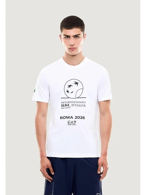 Questa t-shirt firmata EA7 presenta un design sportivo ed esclusivo, realizzato in morbido tessuto composto al 95% da cotone e al 5% da elastam/lycra, garantendo comfort, traspirabilità e una vestibilità elastica che si adatta perfettamente alla silhouette. Il modello a maniche corte sfoggia una stampa celebrativa sul davanti, dedicata agli Internazionali BNL d’Italia Roma 2026, con logo e dettagli grafici distintivi che esprimono uno stile contemporaneo e dinamico. Il girocollo classico e la qualità del marchio EA7 Emporio Armani rendono questa t-shirt ideale sia per look sportivi sia per outfit casual nelle stagioni più calde. Perfetta per chi cerca un capo iconico che unisce praticità, design italiano e passione per lo sport.