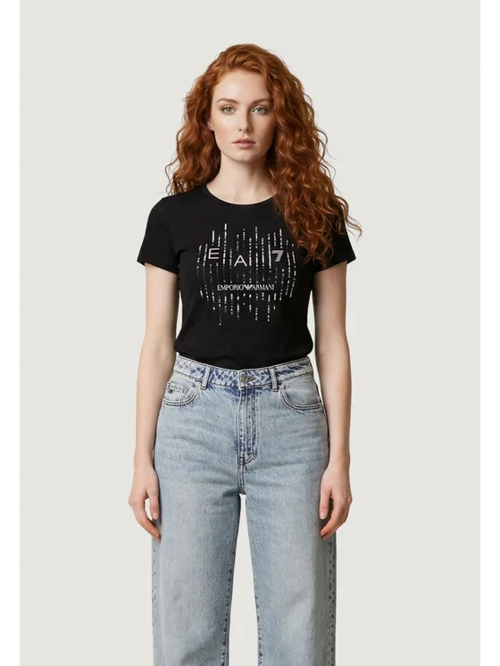 La t-shirt a maniche corte da donna EA7, modello 7W001097 AF10373, unisce eleganza contemporanea e comfort assoluto. Realizzata con una composizione di 95% cotone e 5% elastam/lycra, questa maglietta garantisce una vestibilità aderente ma sempre confortevole, adattandosi perfettamente alle linee del corpo. Il design presenta una stampa EA7 Emporio Armani impreziosita da dettagli grafici verticali che donano un tocco moderno e distintivo. Ideale per essere indossata sia nel tempo libero che in occasioni casual, si abbina facilmente a jeans o pantaloni sportivi per un look grintoso e raffinato.