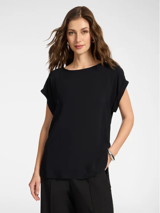 Blusa in tessuto crêpe de chine di viscosa; Vestibilità regular con linea fluida; Maniche corte a kimono, scollatura a barchetta
