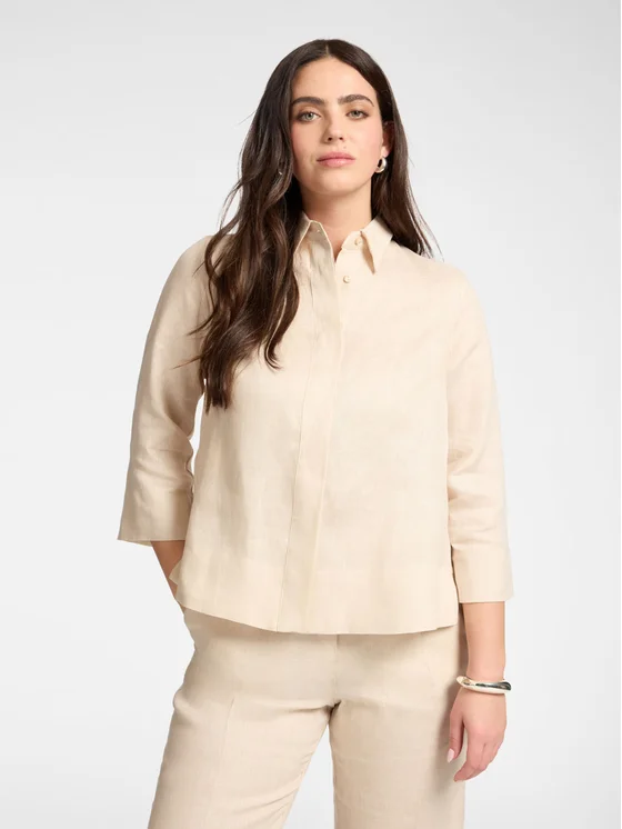 Camicia in tela di lino dalla vestibilità boxy; Chiusura con bottoni, maniche tre quarti; Colletto classico e piega dietro