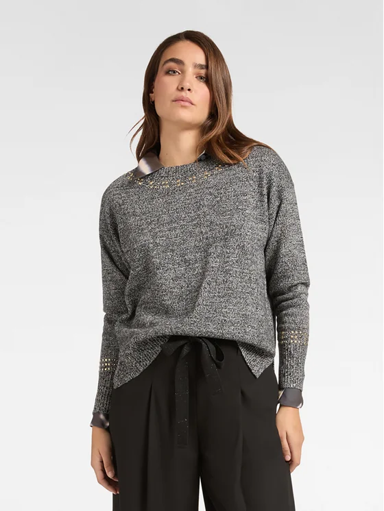 Maglia dallo scollo a barca decorato da borchie in grandezze diverse