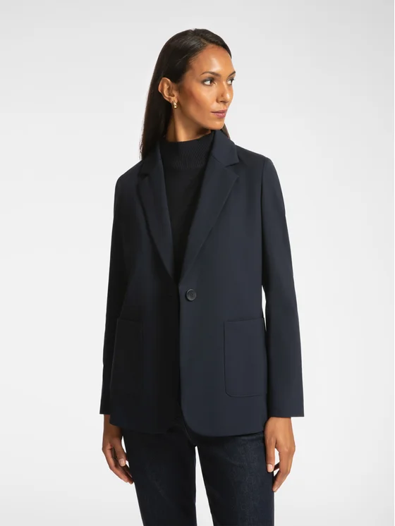 Everyday blazer dalla linea affiancata, in punto milano stretch, pratico e confortevole; Sfoderato, con le spalline attaccabili, è versatile e ha una vestibilità perfetta; Chiusura a un bottone e tasche a toppa.