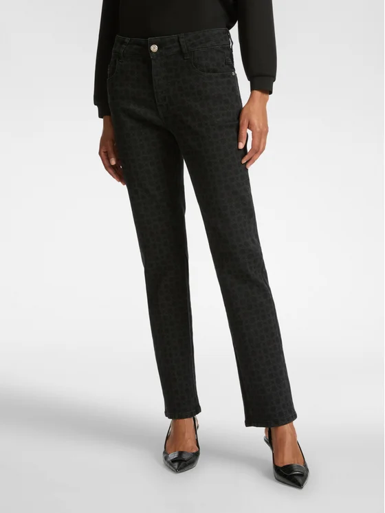 Jeans cinque tasche realizzati in denim power stretch laserato Monogram, che crea uno speciale effetto rendering; Zip e bottone davanti, gamba dritta; Lo stile intramontabile del denim incontra l'attitudine distintiva di Mirò.