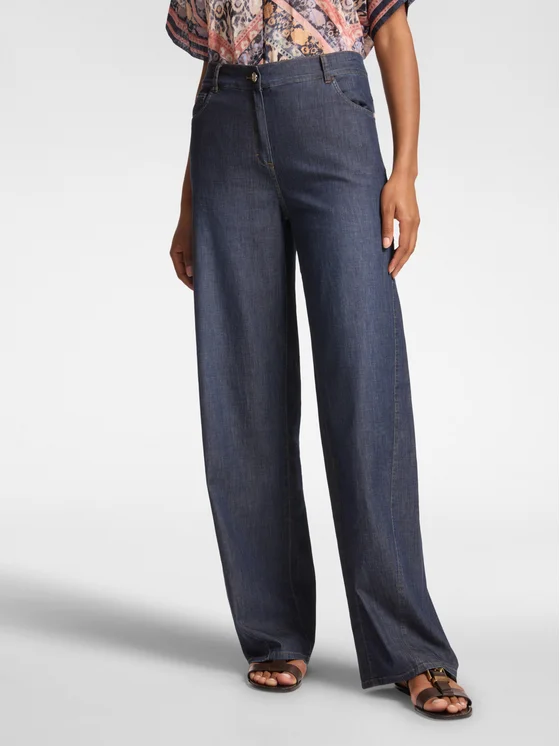 Jeans dalla linea wide leg in Chambray, vestibilità relaxed; Allacciatura davanti, passanti in vita; Per un tocco glamour a un look casual.
