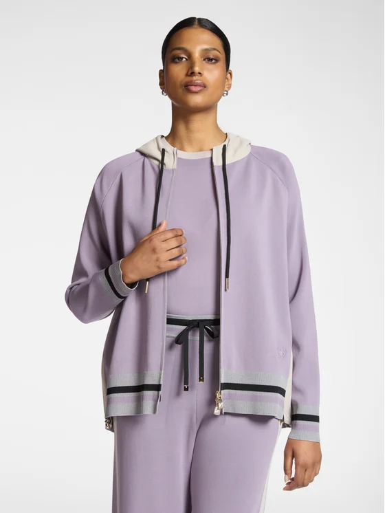 Cardigan in filato misto viscosa dal tessuto compatto; Modello regular con chiusura zip e lunghezza media; Maniche lunghe e cappuccio con cordoncini regolabili