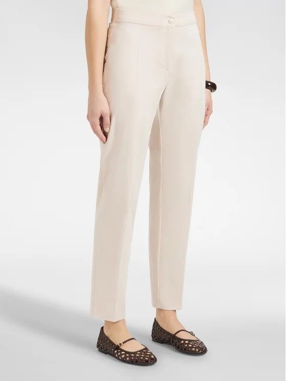 Pantaloni dritti in cotone stretch; Chiusura a bottone e zip; Piega stirata e linea dritta