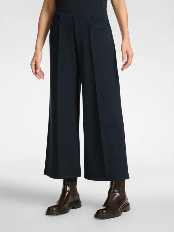 Pantaloni pull on cropped in scuba leggero; La vita elasticizzata permette una comoda vestibilità, all'insegna del massimo comfort; Le comode tasche lo rendono un capo dall'aspetto "sporty chic" da abbinare alle t-shirt nello stesso tessuto.