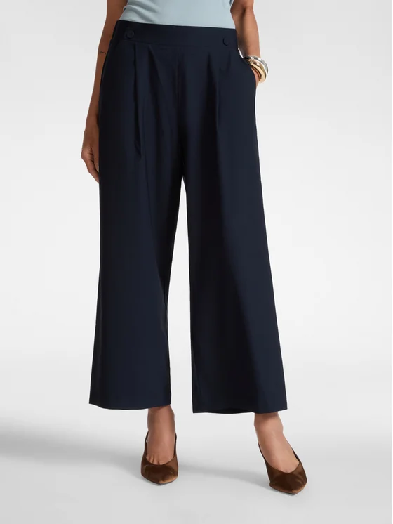 Pantaloni in tessuto misto viscosa; Vestibilità wide con chiusura a fascia elastica; Pieghe in vita e tasche diagonali