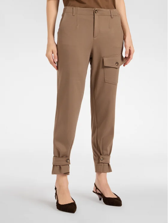 Pantaloni in jersey con ampia tasca laterale e cinturini regolabili al fondo; Zip e bottone davanti; Il fondo regolabile li rende estremamente versatili e adatti a più occasioni.