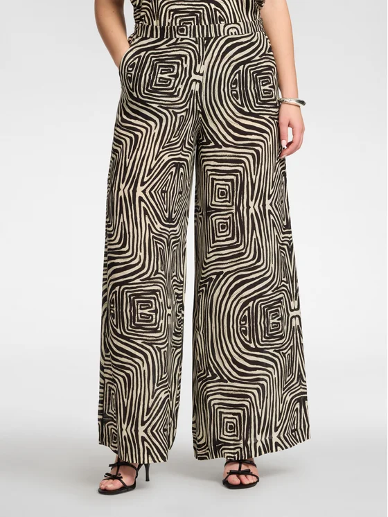 Pantaloni palazzo in crêpe de chine di viscosa stampata; Zip laterale e tasche diagonali; Linea ampia per un look contemporaneo e confortevole