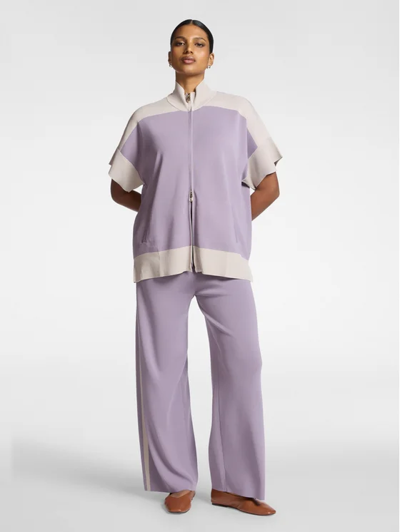 Pantaloni palazzo in tessuto compatto misto viscosa; Chiusura con coulisse regolabile e bordi laterali a contrasto; Gamba ampia e fluida per una vestibilità comoda e rilassata