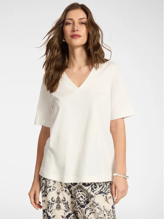 T-shirt in jersey di cotone; Vestibilità regular con maniche corte; Scollo a V