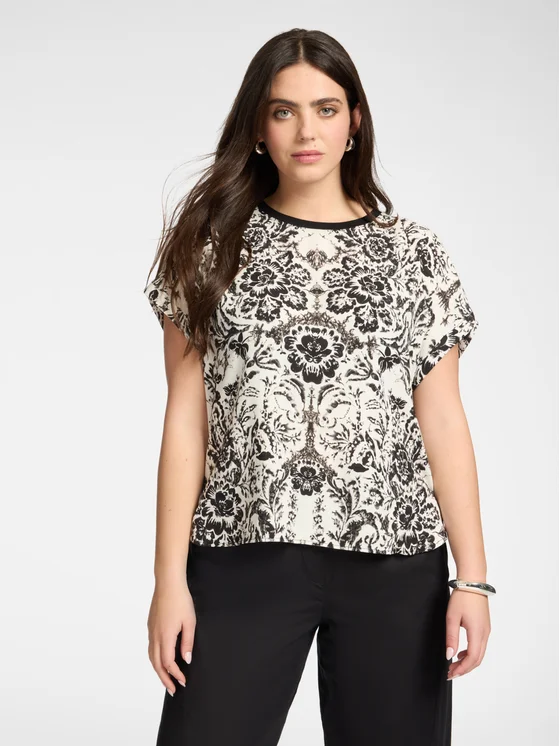 T-shirt in tessuto di viscosa con stampa davanti; Vestibilità regular e maniche corte; Scollo tondo