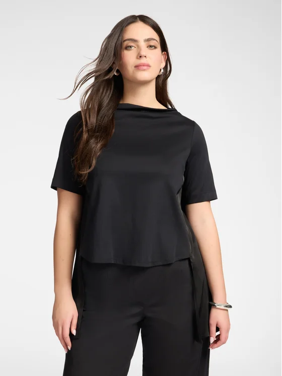 T-shirt in jersey di cotone; Vestibilità regular con maniche corte; Scollo a barchetta e dettaglio volant dietro