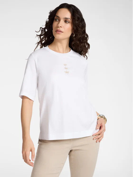 T-shirt in jersey di cotone con applicazione davanti; Vestibilità regular e maniche corte; Scollo tondo