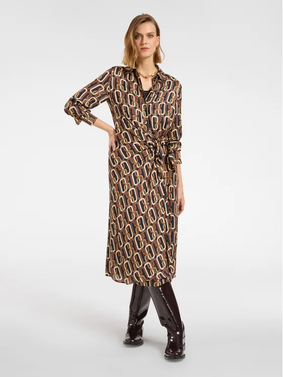 Abito wrap modello chemisier, in twill di viscosa, dall'allure sofisticata e moderna.; Colletto, bottoni foderati, maniche lunghe con polsini alti e bottone; Il nodo regolabile sul davanti, lo rende femminile e adatto a ogni fisicità.
