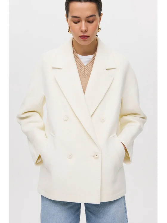 Marca: Estro Collezione: Primavera 2025 Colore: bianco Fantasia: tinta unita Materiale esterno: 60% lana, 10% viscosa, 30% poliestere Fodera: poliestere Scollatura: a V Colletto: colletto con revers Chiusura: cintura Vestibilità: loose fit Taglio: dritto Lunghezza: sotto i fianchi Lunghezza maniche: manica lunga Tasche: sì Paese di produzione: Ucraina