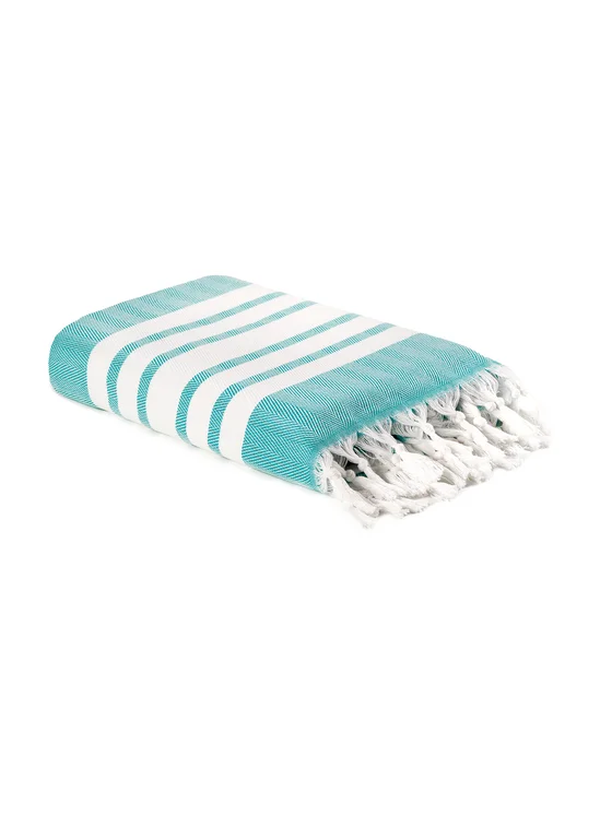 Il grande telo Hammam RK/761 a righe più larghe nei toni del verde e del bianco è un accessorio elegante e funzionale, perfetto per la spiaggia, la sauna, la piscina o il tuo SPA domestico. Realizzato al 100% in cotone naturale, con grammatura di 210 g/m², si distingue per l’eccellente assorbenza e la rapida asciugatura, rendendolo una scelta ideale per le giornate estive. La struttura leggera e compatta permette di riporlo facilmente nella borsa da viaggio, mentre la superficie liscia evita che la sabbia vi si attacchi. Le frange decorative gli conferiscono un tocco bohémien e delicato, permettendogli di essere usato anche come pareo, coperta o tovaglia per le serate estive. Le sue dimensioni generose (100 x 180 cm) garantiscono il massimo comfort, e il classico motivo a righe aggiunge un tocco di eleganza. Il certificato OEKO-TEX® STANDARD 100 assicura che il tessuto sia sicuro anche per la pelle dei bambini. Ovunque tu decida di usarlo, il telo Hammam RK/761 unisce comodità, funzionalità e uno stile alla moda!
