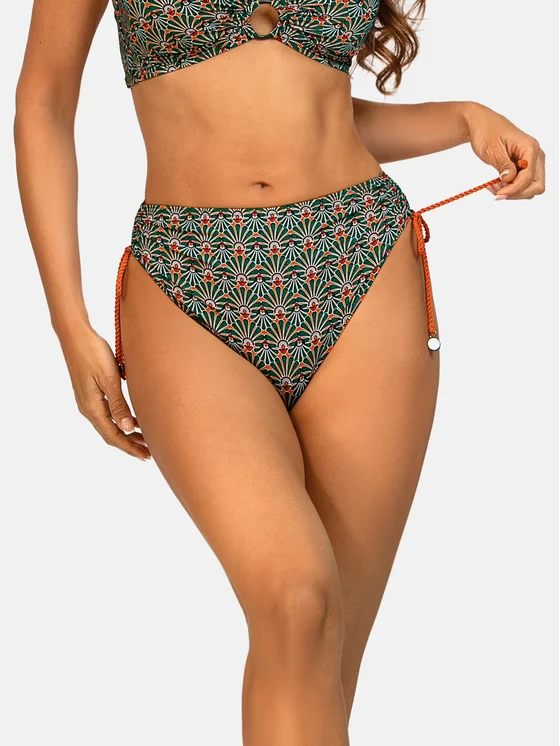 Gli slip bikini FD90/923 della linea Pustynny Orient uniscono una stampa boho orientale a mosaico a un taglio funzionale che valorizza splendidamente la silhouette. La vita alta leviga otticamente l’addome e modella il punto vita, offrendo al tempo stesso comfort e una piacevole sensazione di stabilità. I laccetti regolabili ai lati permettono di modificare la sgambatura, così puoi adattare facilmente lo stile: da più classico a più sensuale. Il tessuto morbido ed elasticizzato e il retro più coprente garantiscono comodità per tutta la giornata, sia in spiaggia sia durante le attività in acqua. La disponibilità dalla taglia S alla 4XL rende il modello un’ottima scelta anche per donne curvy, alla ricerca di slip a vita alta comodi e di carattere.