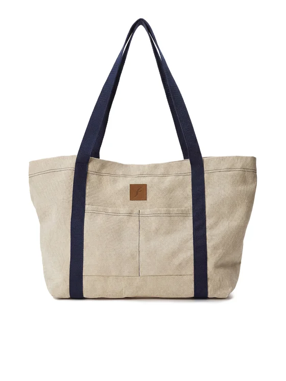 La borsa da spiaggia shopper da donna in lino F87/BAG61 è un classico beige che si adatta perfettamente sia alla spiaggia sia all’uso quotidiano come capiente shopper. Il colore chiaro sabbia-beige e i manici blu navy le conferiscono un delicato carattere marinaro, ideale in abbinamento a costumi da bagno nei toni del blu e del beige. La borsa è realizzata in una naturale miscela di cotone e lino, risultando leggera, morbida al tatto e al tempo stesso capace di mantenere bene la forma. L’interno spazioso e le pratiche tasche – una esterna divisa in due scomparti e una interna – permettono di organizzare facilmente tutti gli indispensabili da spiaggia, dall’asciugamano alla crema solare. I manici lunghi facilitano il trasporto a spalla, mentre la patch con logo Feba sottolinea la qualità e il carattere intramontabile dell’accessorio.