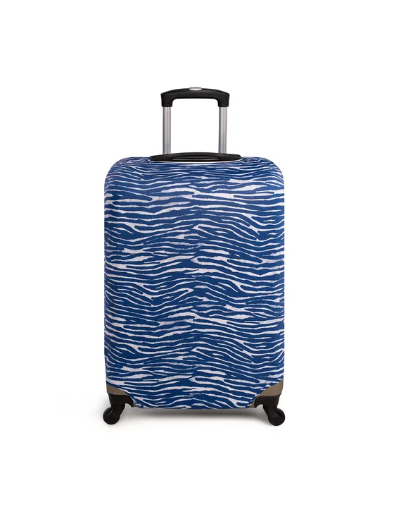 La custodia per valigia con stampa animalier blu navy è una protezione elegante del bagaglio per ogni viaggio. Il motivo che richiama le righe di una zebra nei toni del blu navy e del bianco fa risaltare la valigia sul nastro bagagli e la rende facilmente riconoscibile anche da lontano. Il tessuto elasticizzato avvolge morbidamente il bagaglio, proteggendolo da graffi, sporco e abrasioni durante il trasporto. Le aperture studiate per la maniglia telescopica e le impugnature non limitano la praticità d’uso, mentre la custodia, una volta ripiegata, occupa pochissimo spazio nel bagaglio a mano. È un accessorio pratico per chi viaggia spesso e desidera che la propria valigia mantenga a lungo un aspetto come nuovo. Nota: vendiamo esclusivamente la custodia, senza la valigia visibile nelle immagini. TAGLIA M – valigie medie (dimensioni misurate da distesa: larghezza 60 cm, altezza 76 cm).