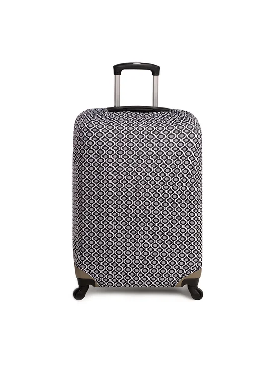 La custodia media per valigia FPW02/774 con stampa geometrica bianca e nera è una protezione pratica del bagaglio dallo stile urbano. Il tessuto elasticizzato si adatta alla forma della valigia di medie dimensioni, proteggendola da graffi, sporco e segni di uso intensivo. La fantasia sobria ma decisa rende il bagaglio facilmente riconoscibile sul nastro trasportatore, mentre il design si abbina perfettamente sia a look femminili che maschili. La custodia è dotata di aperture precise per la maniglia telescopica e l’impugnatura laterale, oltre a una chiusura in velcro sul fondo che impedisce lo spostamento durante il trasporto. Una volta rimossa, può essere rapidamente ripiegata in dimensioni compatte e riposta nella valigia o nel bagaglio a mano, rendendola il compagno ideale per viaggi di lavoro e vacanze. TAGLIA M – valigie medie (dimensioni misurate da distesa: larghezza 60 cm, altezza 76 cm).
