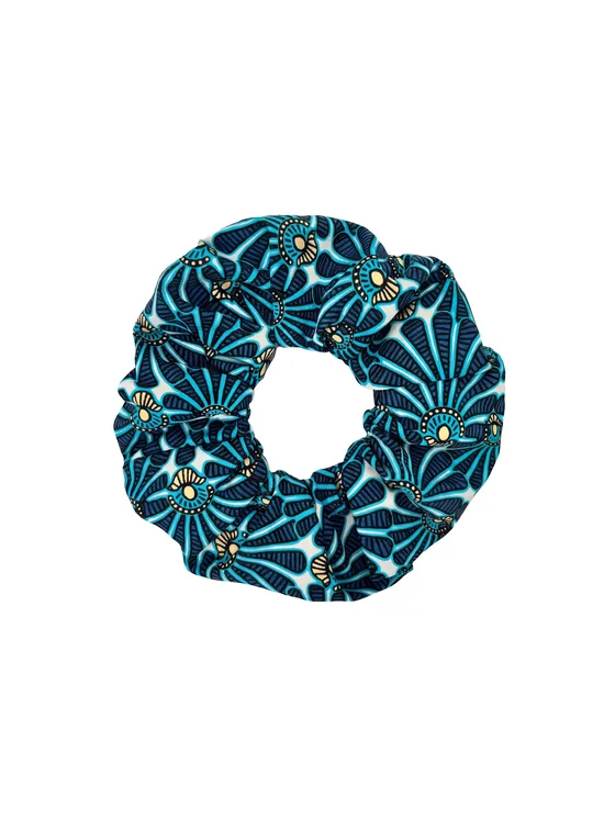 Lo scrunchie G03/922 della linea Morski Orient è un elastico per capelli con stampa orientale-marina nei toni del turchese e del blu navy. Delicato sui capelli, comodo da indossare e perfetto per le acconciature estive. È il complemento ideale per il bikini e gli accessori della stessa collezione.