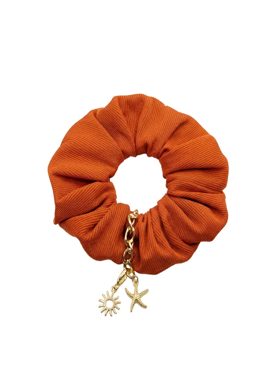 Lo scrunchie arancione con charms G04/793P è un piccolo accessorio, ma di grande effetto, della collezione Pustynny Orient. Realizzato nello stesso tessuto leggermente a coste dei costumi nella tonalità terracotta, si abbina perfettamente a questi modelli e valorizza la calda abbronzatura. I charm dorati su una sottile catenina aggiungono un tocco gioiello e attirano lo sguardo a ogni movimento. Il tessuto morbido ed elastico non strattona né spezza i capelli, mentre l’elastico flessibile tiene bene sia le ciocche sottili sia quelle più folte. Lo scrunchie è perfetto per code, chignon, trecce e anche come accessorio da indossare al polso, come un braccialetto. È il completamento ideale per i costumi della linea Pustynny Orient e per tutti i look estivi nelle tonalità del beige, marrone, oliva e del classico nero.