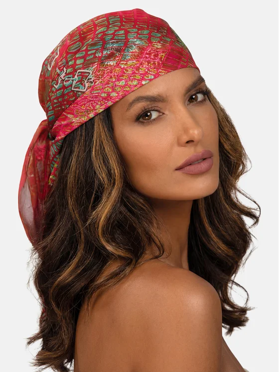 Il foulard da spiaggia traspirante CH01/921 della linea Podwodna Energia è una sciarpa colorata pensata per le donne che amano giocare con gli accessori e creare look da spiaggia coerenti e originali. Le intense tonalità di rosa, corallo, turchese e azzurro, arricchite da motivi di stelle marine, coralli e piante marine, evocano il mondo sottomarino e una barriera corallina illuminata dal sole. Realizzato in un tessuto sottile e leggermente trasparente, è fresco, piacevole al tatto e protegge efficacemente capelli e testa dal sole senza creare sensazione di calore eccessivo. Il formato quadrato 70 × 70 cm consente di annodarlo in molti modi: come turbante, fascia per capelli, bandana, foulard al collo o dettaglio decorativo da legare alla borsa da spiaggia. I colori vivaci valorizzano splendidamente l’abbronzatura e donano energia anche al costume da bagno più semplice. Il foulard completa perfettamente i costumi e gli accessori della linea Podwodna Energia; inserendo il numero 921 nel motore di ricerca potrai facilmente abbinarlo a bikini e pareo coordinati.