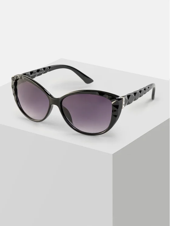 Conosci il modello Elizabeth - gli occhiali neri dallo stile occhi di gatto, che sono sinonimo di eleganza senza tempo e versatilità. Si adattano a ogni stile e tipo di bellezza, grazie alla forma semplice e al design minimalista. Gli occhiali hanno una montatura nera e una lente leggermente sfumata, che va dal nero più scuro in alto al grigio più chiaro in basso. Sui supporti auricolari e sul lato della montatura c'è un delicato motivo geometrico che aggiunge un tocco di lusso. La loro finitura resistente ma leggera garantisce comfort durante molte ore di utilizzo.