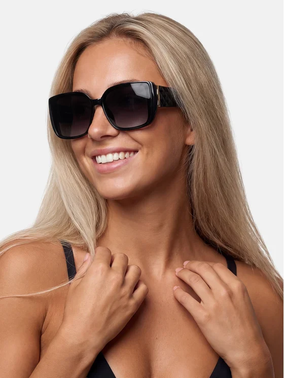 Gli occhiali da sole Diva Black sono un modello classico ed elegante con montatura nera e lenti leggermente sfumate, perfetto per completare qualsiasi look estivo. Le aste larghe con motivo goffrato e dettaglio dorato donano all’insieme un carattere fashion e lussuoso. Il filtro UV400 categoria 3 protegge efficacemente gli occhi dal sole, assicurando comfort visivo nelle giornate luminose. È un accessorio versatile, che si abbina splendidamente sia al beachwear sia agli outfit cittadini. In dotazione ricevi anche una custodia rigida e un panno in microfibra.