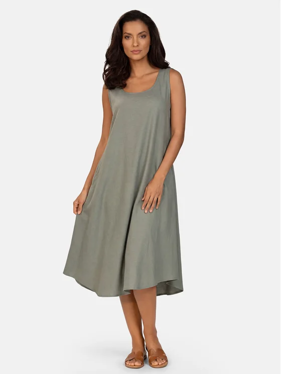 L’abito F253/857 della linea Lniany Szept Natury è una proposta leggera e ariosa per l’estate, in una delicata tonalità khaki chiaro. Il tessuto naturale con una percentuale di lino lascia respirare splendidamente la pelle, mentre il taglio oversize assicura piena libertà di movimento e veste bene su diversi tipi di silhouette, anche plus size. La linea svasata a partire dal seno non fascia l’addome né i fianchi, mentre le spalline larghe e la schiena coprente rendono l’abito molto comodo da indossare ogni giorno. La lunghezza a metà polpaccio e le tasche laterali aggiungono praticità e un leggero carattere vacanziero. È un modello ideale per la spiaggia, una passeggiata o la città, e sta benissimo con ciabattine, una borsa intrecciata e occhiali da sole.