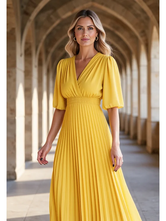 FIGL Abito da cocktail M1124 Giallo Feminine Fit